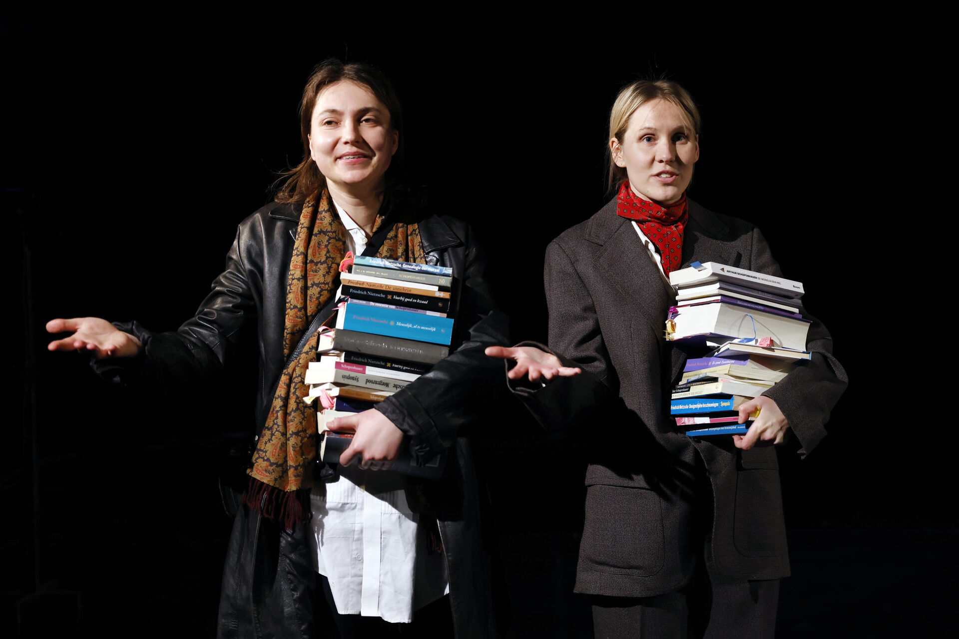 In Arthur & Friedrich, een nacht in Bayreuth worden de grote Schopenhauer en Nietzsche voor één nacht tot leven gefantaseerd. Nooit hebben deze twee filosofen elkaar ontmoet. Tot nu. Al wandelend door de Duitse stad Bayreuth wisselen de mannen van gedachten en staan ze uiteindelijk lijnrecht tegenover elkaar. Waar de een ons probeert te verlossen van dit aardse tranendal, roept de ander ons op het ongeluk juist recht in de ogen aan te kijken. Dwars door alle vurige argumenten heen, zien we twee jonge vrouwen, Emma en Dinda, op zoek naar houvast. Al hadden de beste mannen hen liever de mond gesnoerd (want ‘er is geen vrouw die deugt’, aldus Schopenhauer).