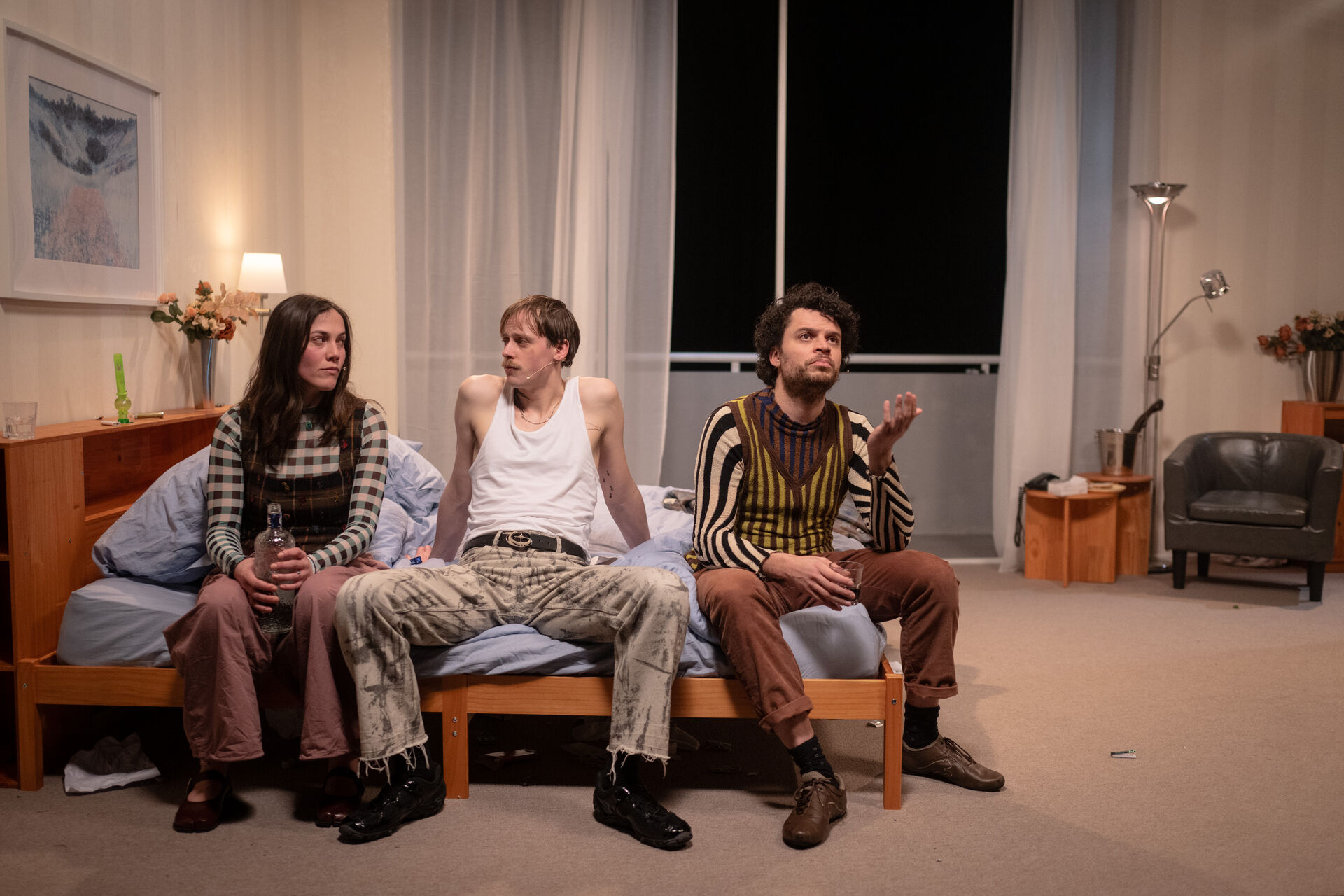 Wat begint als een auditie, verandert in een romantische bermudadriehoek. Ondertussen staat buiten de wereld in de fik. Is de liefde hun ontsnapping uit de realiteit? Of redt de realiteit hen juist van de liefde?