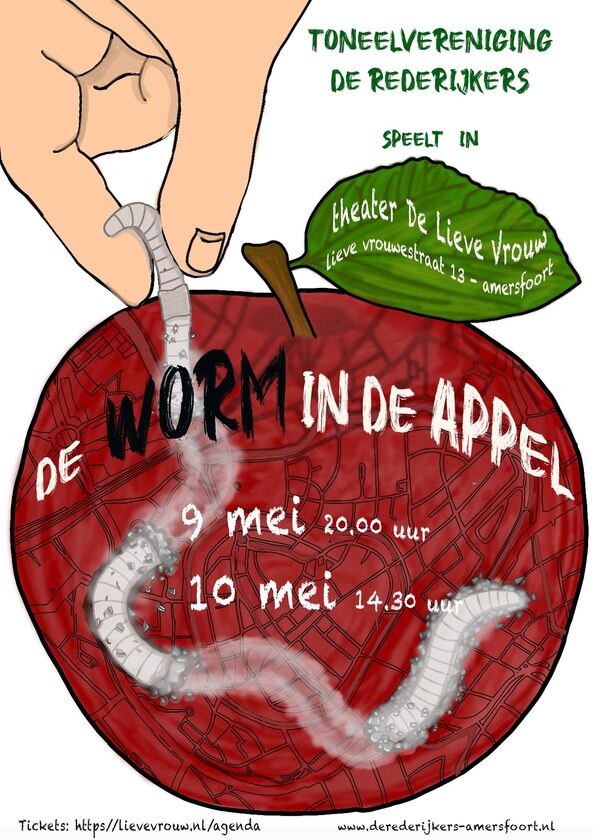 Die worm is de stadsring, de appel is Amersfoort. Al sinds de jaren 70 van de vorige eeuw wordt er actie gevoerd om deze plek. Met die worm brachten ook de actievoerders van de toen hun actie in beeld en zelfs hun namen komen terug in ons stuk.