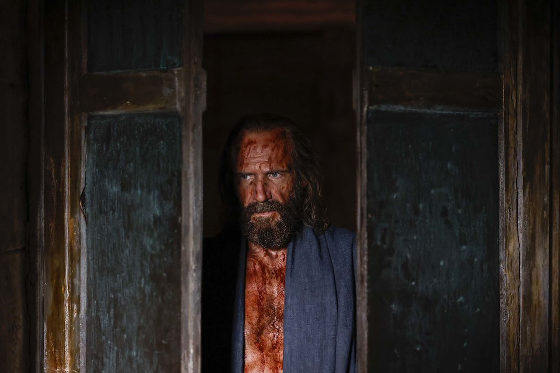 Na decennia lang weg te zijn geweest, spoelt Odysseus eindelijk spiernaakt (Ralph Fiennes, met verrassend gespierd wasbordje) en zonder bezittingen aan op het eiland Ithaka, waarvan hij ooit de krijger-koning was.