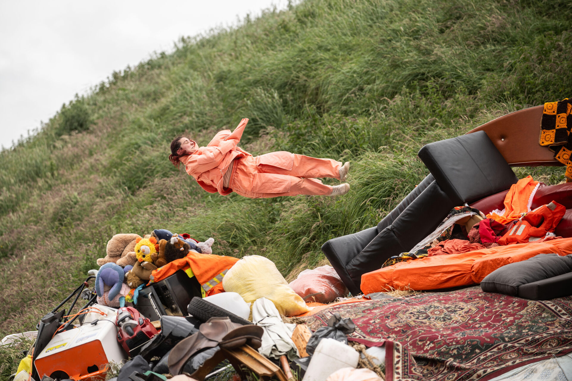 Uit een grote afvalberg kruipen vijf performers tevoorschijn. Ze gooien spullen, afval en elkaar weg. Ze worden spullen, de spullen zijn hun leven. Fabrieksmatige bewegingen en kuddegedrag wisselen elkaar af. Is het Utopia of zijn ze in de hel beland? Ze wachten op iets, een verlossing, een nieuwe wereld. Kunnen ze zich uit deze zelfgemaakte gevangenis bevrijden?
